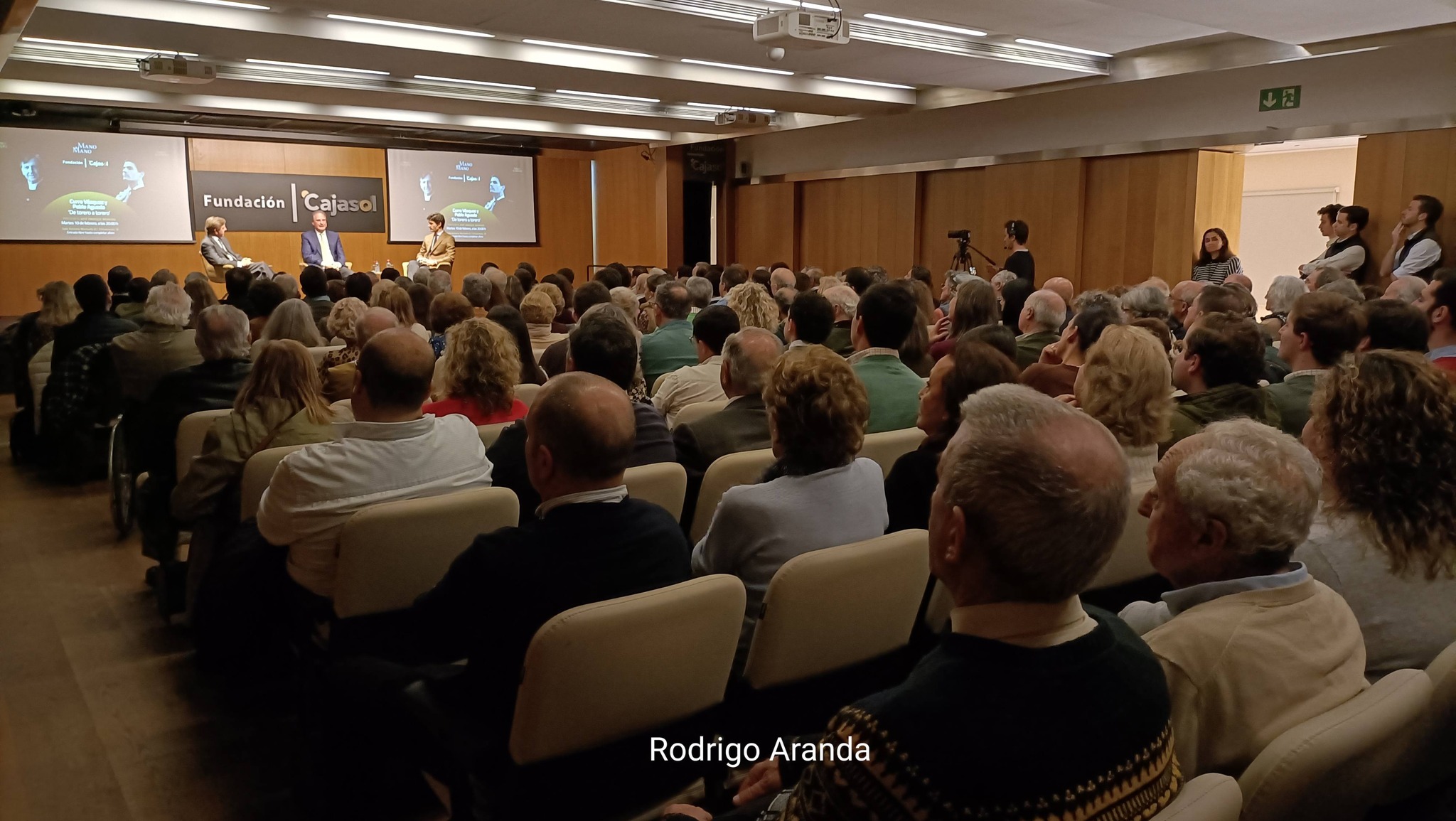 La jornada abrió con Moreno poniendo en valor el interés del público por la tauromaquia, dado que tan solo pudieron acceder a la sala 200 personas de la cola que empezaba en la entrada de la calle Chicarreros y llegaba hasta la de la Plaza de San Francisco. «Es la prueba de que quieren oír hablar de toros, tienen ganas de toros», confirmó, recordando que la nueva temporada está a la vuelta de la esquina. Durante la presentación, el comunicador subrayó la trayectoria de los ‘Mano a Mano’, definiéndolo como «un ciclo de la Fundación Cajasol en su apuesta por la cultura, porque el toreo es cultura, forma parte de nuestras raíces».