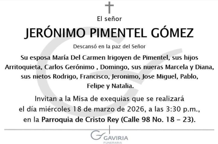 El velorio del maestro Jerónimo Pimentel se realiza desde esta tarde en la funeraria Gaviria de la calle 98 en Bogotá.